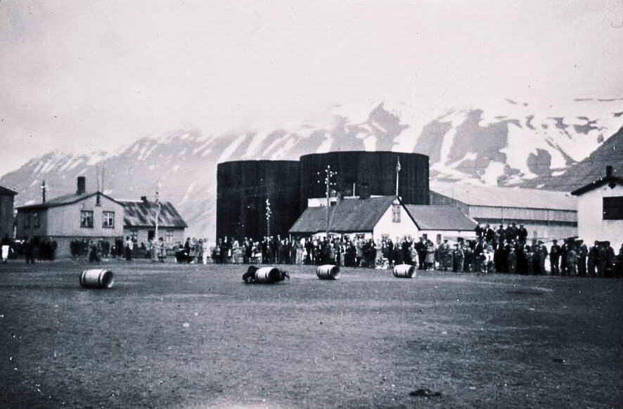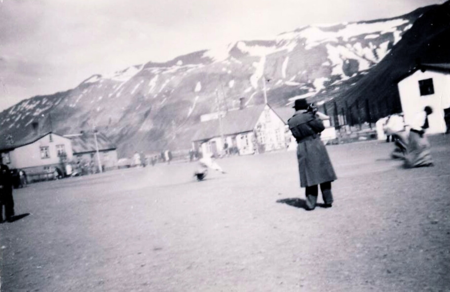Hér á eftir er safn mynda sem pabbi tók á myndavérl sem han eignaðist um 1944. Myndirnar eru af verkamönnum sem unnu við byggingu SR46 og af ýmsum hátíðarhöldum á íþróttavellinum um og fyrir 1945. Þar má sjá að stóra mjölhúsið er ekki komið upp og svo líklega ári seinna þar sem mjölhúsið er byggt og tankarnir vestanmegin eru enn ómálaðir. Það er líklegt að þessi hátíðarhöld og leikir á íþróttavellinum séu í tilefni sjómannadagsins. Svo eru ýmsar myndir af fjölskyldunni og vinum. Þetta er bara hluti mynd sem ég hef skannað og enn eru margar myndir á 6x6 filmum (negatívum).