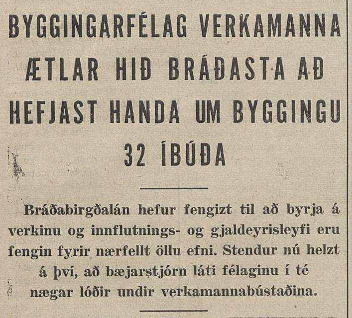 Það gekk ekki átakalaust að afla fjár til byggingar verkamannabústaða. Byggingarsjóður verkamanna þraut fé og gat ekki lánað meira og byggingaraðilar voru að komast í þrot. Þingmaður Siglfirðinga Áki Jakobsson úr Sósíalistaflokknum spurði forsætisráðherra og félagsmálaráðherra um úrlausnir. Hér eru glefsur úr fyrirspurn Áka og má sjá að staðan er ekki bara erfið heldur mjög alvarleg: