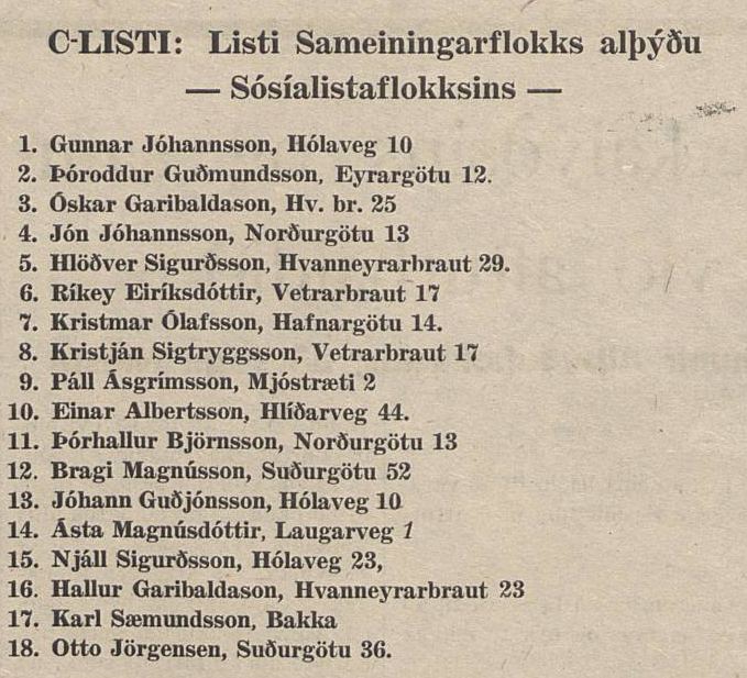 Haustið 1945, pabbi er þá 22 ára og komin af lífi og sál í allskonar félagsstarf á Siglufirði. Hann var virkur í starfi Verkamannafélagsins Þróttar og sat m.a. í 1. maí nefnd verkalýðsfélaganna 1945.