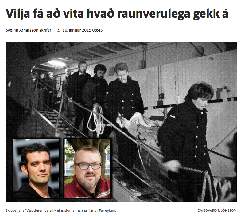“Båten var i dårlig forfatning. Vi måtte stå oppreist i livbåten, noe som ikke er det letteste under disse omstendighetene, høy sjø og vindkast. De som satte seg reiste seg ikke igjen”, sa Jón Snæbjörnsson, styrmann til avisa Morgunblaðið, 28. desember 1986. ”Det var helt klart en forferdelig situasjon, men vi trodde hele tiden at redningen ville kommer. Vi snakket hele tiden sammen”. Jón sa at de regelmessig hadde navneopprop i gruppen og at samholdet hadde mye å si.